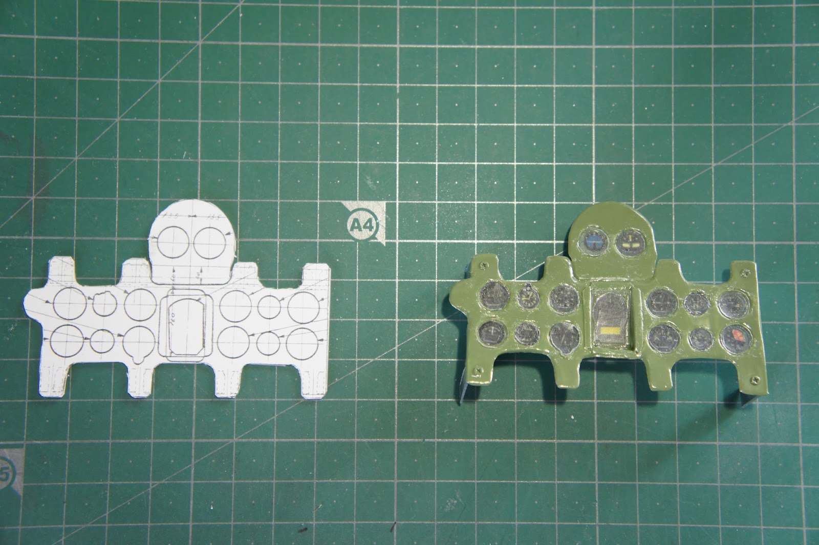 型紙と完成した計器盤・・・うんん~ん!?やっぱり出来がイマイチだなあ~